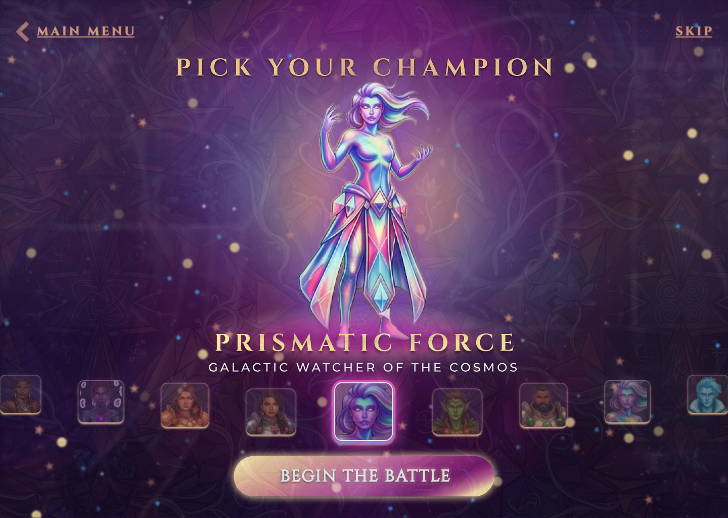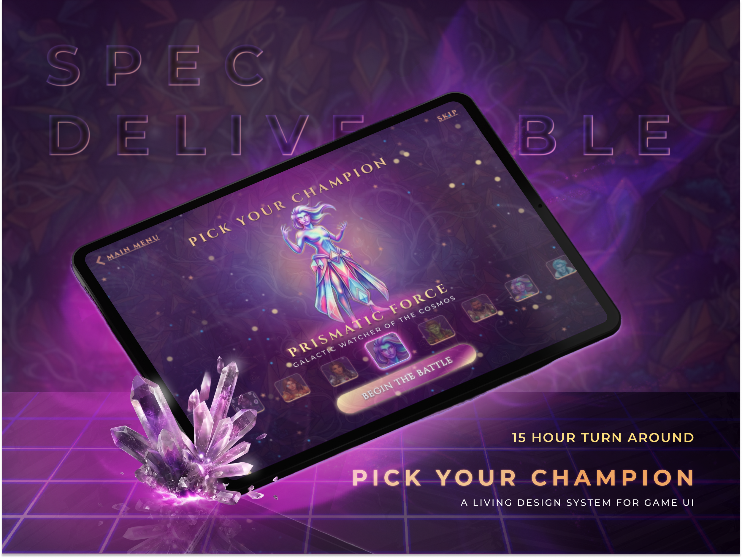 Most character select screens are built once, for one character. This one was built to work for all of them. Starting from a blank canvas with a 15-hour window, every component, token, animation, and effect was designed and constructed from scratch. The first archetype took the bulk of the time. The four that followed took under 10 minutes combined.